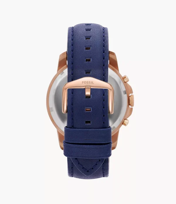 The Fossil Grant Chronograph in navy leather offers a perfect blend of sophistication and functionality. This watch stands out with its elegant design, making it a versatile accessory for both formal and casual occasions.