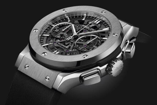 The watch’s unique design is accentuated by its intricate skeleton dial, which not only offers a glimpse into its mechanics but also adds a modern flair. The understated elegance and versatility of the Hublot Classic Fusion Aerofusion Titanium make it suitable for various occasions, whether formal or casual.
