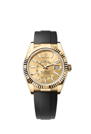 The Rolex Sky-Dweller Oysterflex is a remarkable timepiece that seamlessly blends luxury and functionality. With its innovative design, this watch offers travelers a unique dual time zone feature, making it an essential companion for globe-trotters.